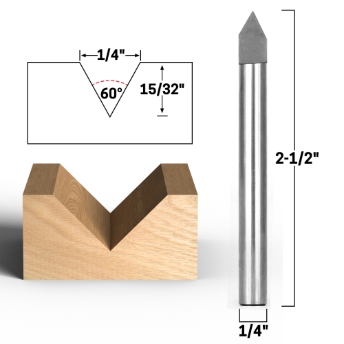 This solid carbide 60° engraving bit features a cutting length of 15/32" with a wide cutting diameter of 1/4". The overall length is 2-1/2" with a shank diameter of 1/4".